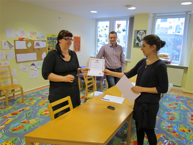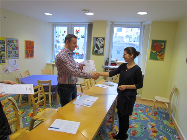 Сначала Анастасия вручила дипломы школы Atlasnet об окончании курсов русского языка.