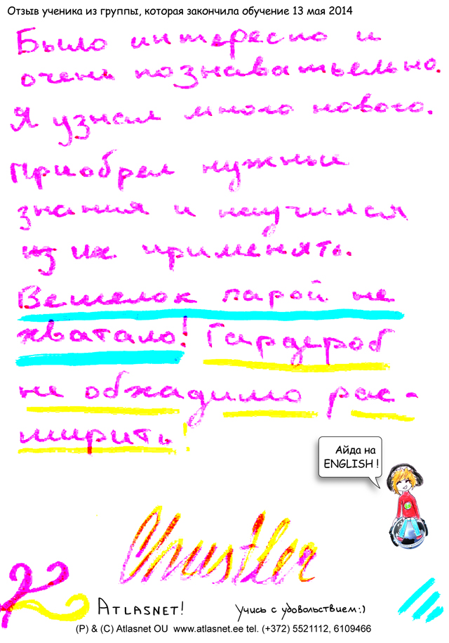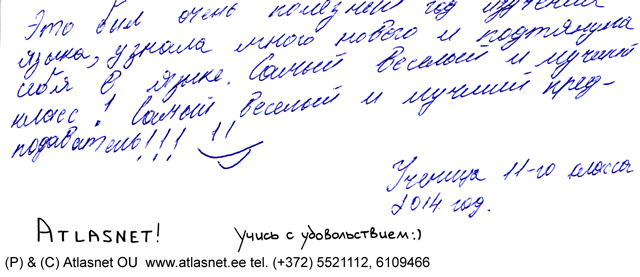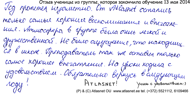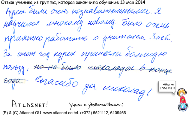 13 мая 2014 года. Tallinn, Atlasnet. Курсы английского языка для школьников 11 класса закончены.